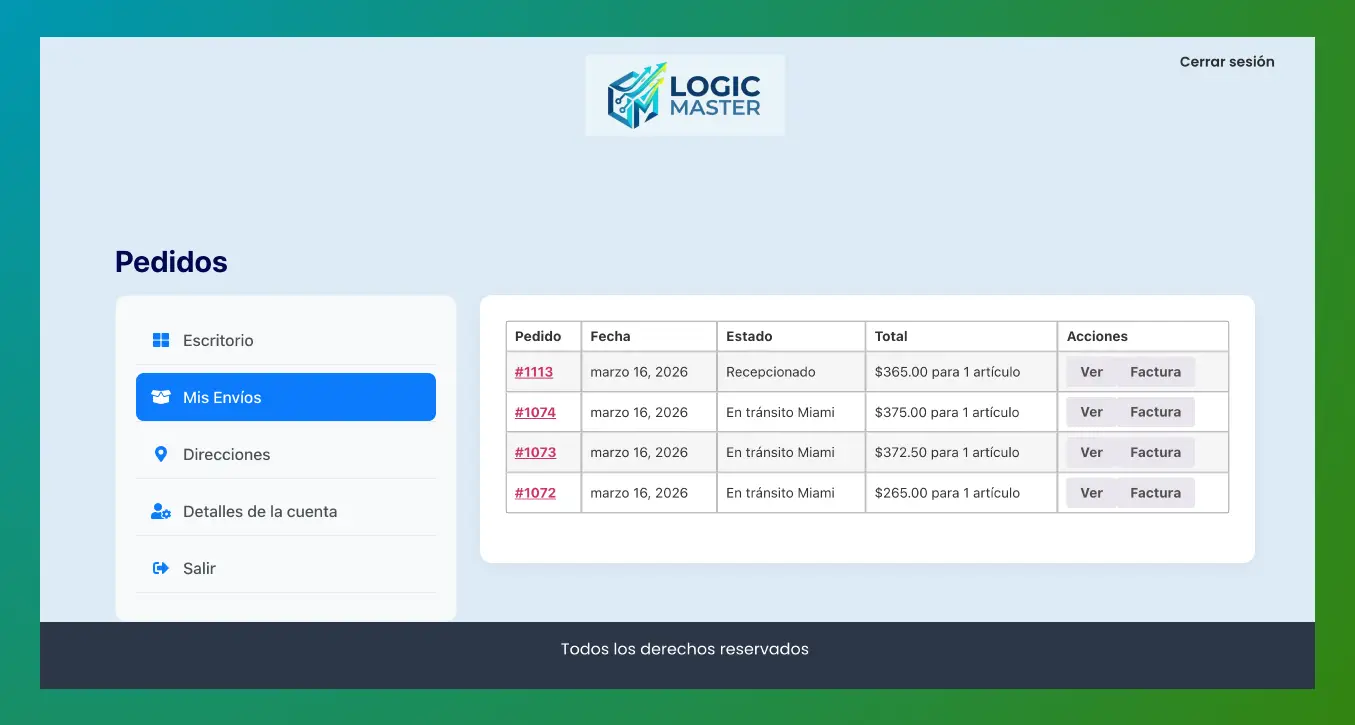 Te presentamos Logic Master, el sistema logístico de envío diseñado para transformar el caos en una operación de precisión. No es solo un software; es el cerebro de tu negocio. Desde la cotización inteligente hasta el tracking en tiempo real, Logic Master automatiza tu flujo de trabajo para que tú te enfoques en lo que importa: hacer crecer tu volumen de carga.